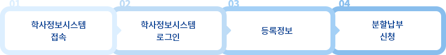 본 교는 학생 등록금부담 완화를 위해 매 학기 최대 4회까지 등록금을 분할하여 납부할수 있도록 분할납부제를 시행하고 있습니다.