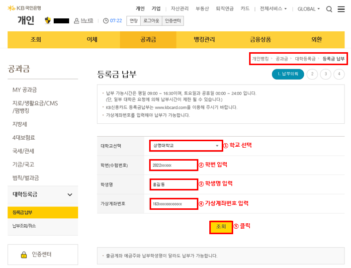 본인 "가상계좌"에 이체하는 방식으로 등록금을 납부하실 수 있습니다.