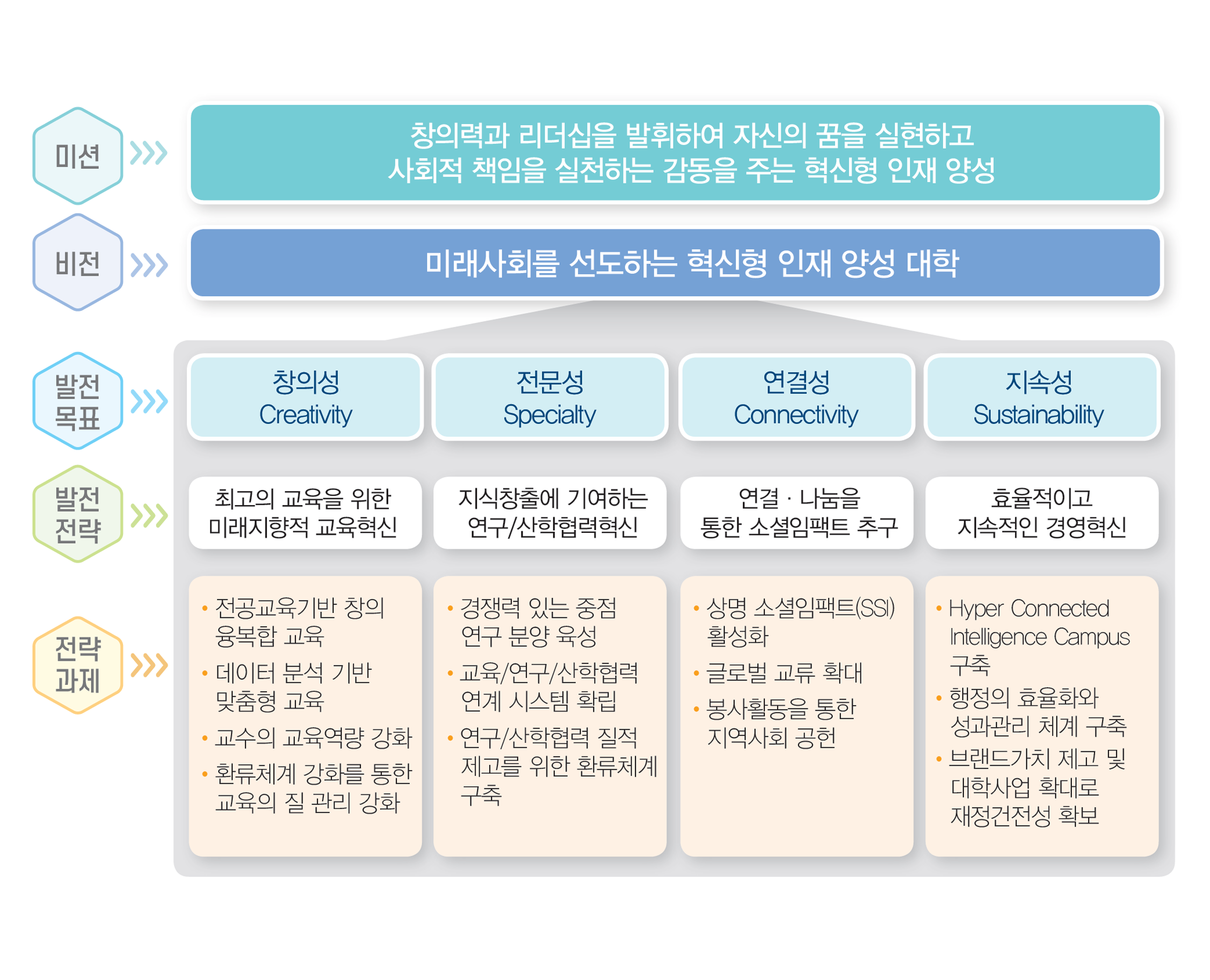 창의력과 리더십을 발휘하여 자신의 꿈을 실현하고 사회적 책임을 실천하는 감동을 주는 혁신형 인재 양성