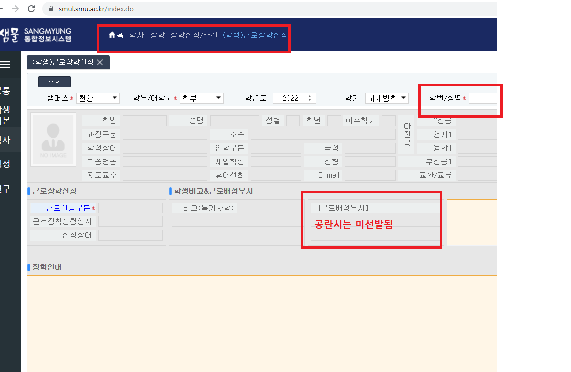 | 천안 [등록/장학] | 2025학년도 2학기 학기 중 교내근로 배정 및 근로장학 신청서 제출 안내 |