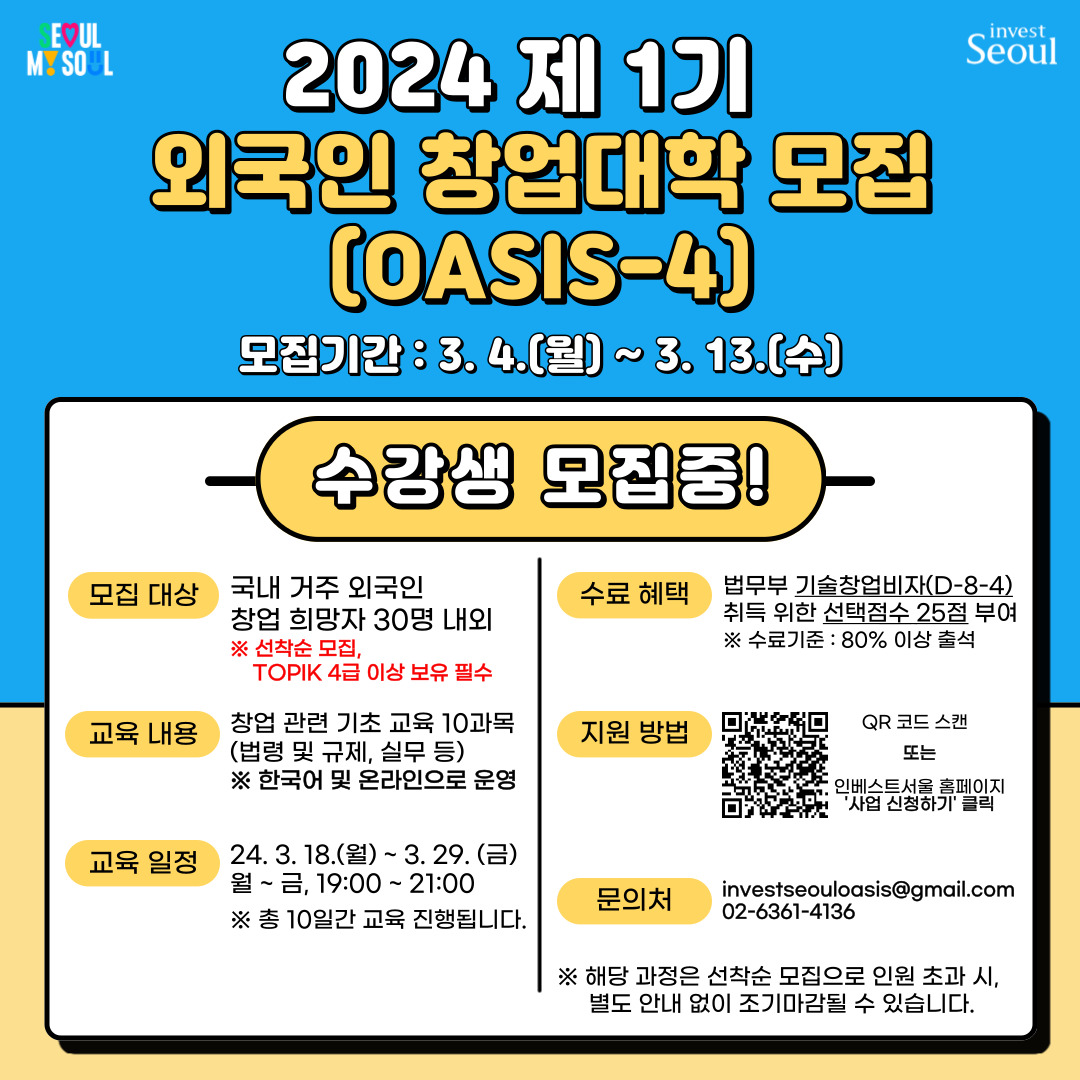 - [취업 및 진로] [서울경제진흥원] 2024년 제1기 외국인 창업대학 홍보