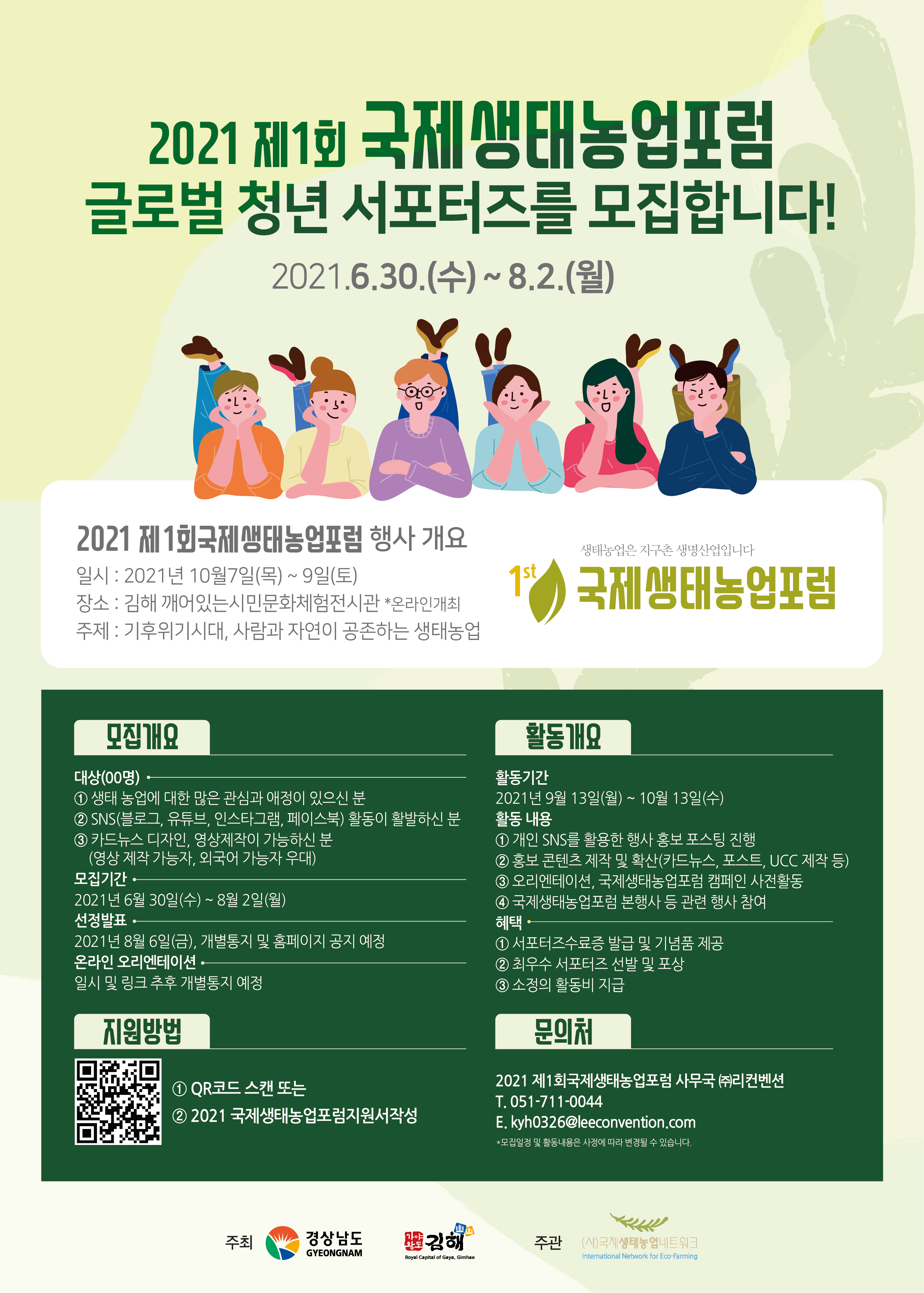 - [생활] 2021 제1회 국제생태농업포럼 서포터즈 모집 안내