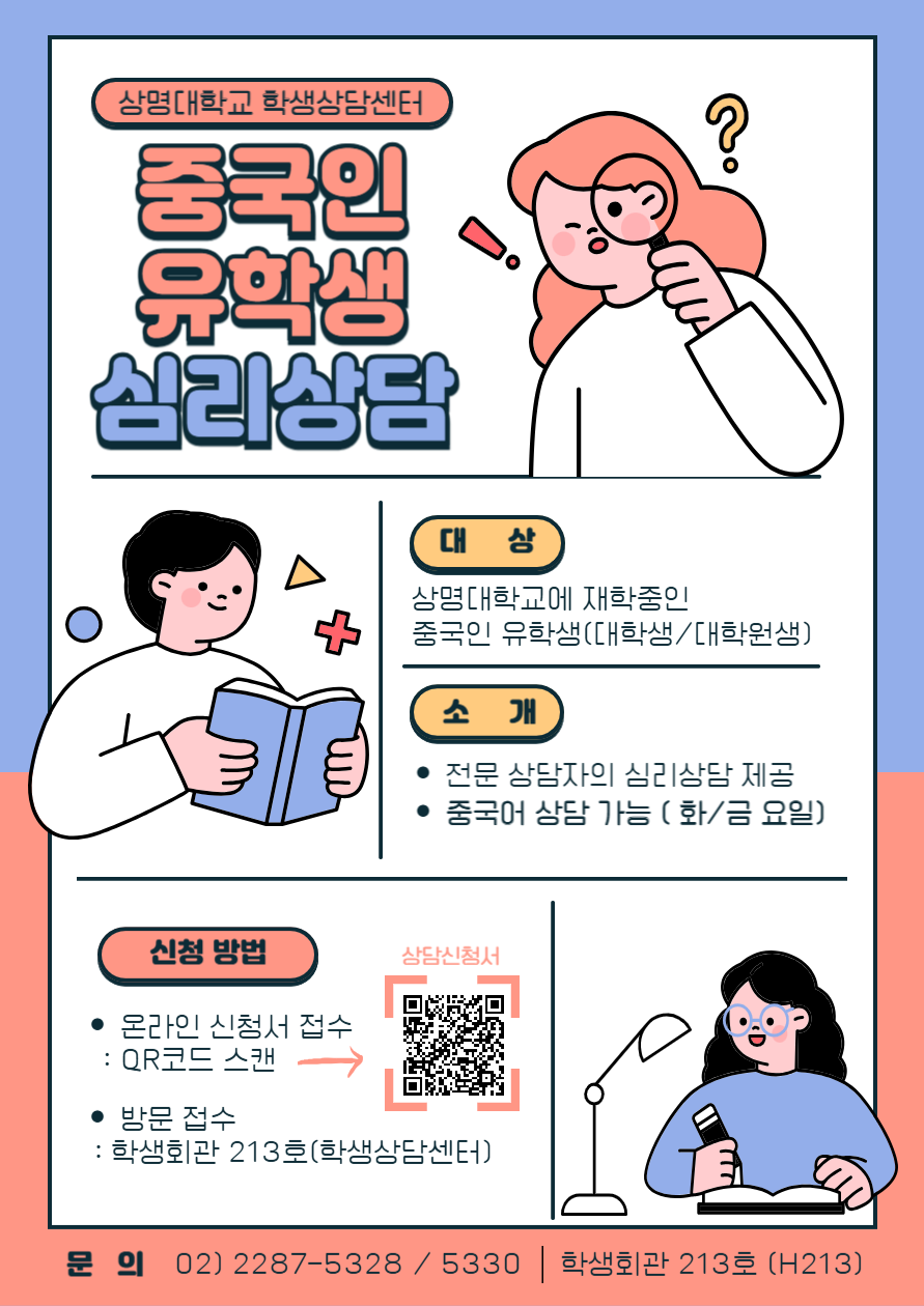 서울 [학생생활] [학생상담센터] 중국 유학생 대상 중국어 심리상담 안내 -